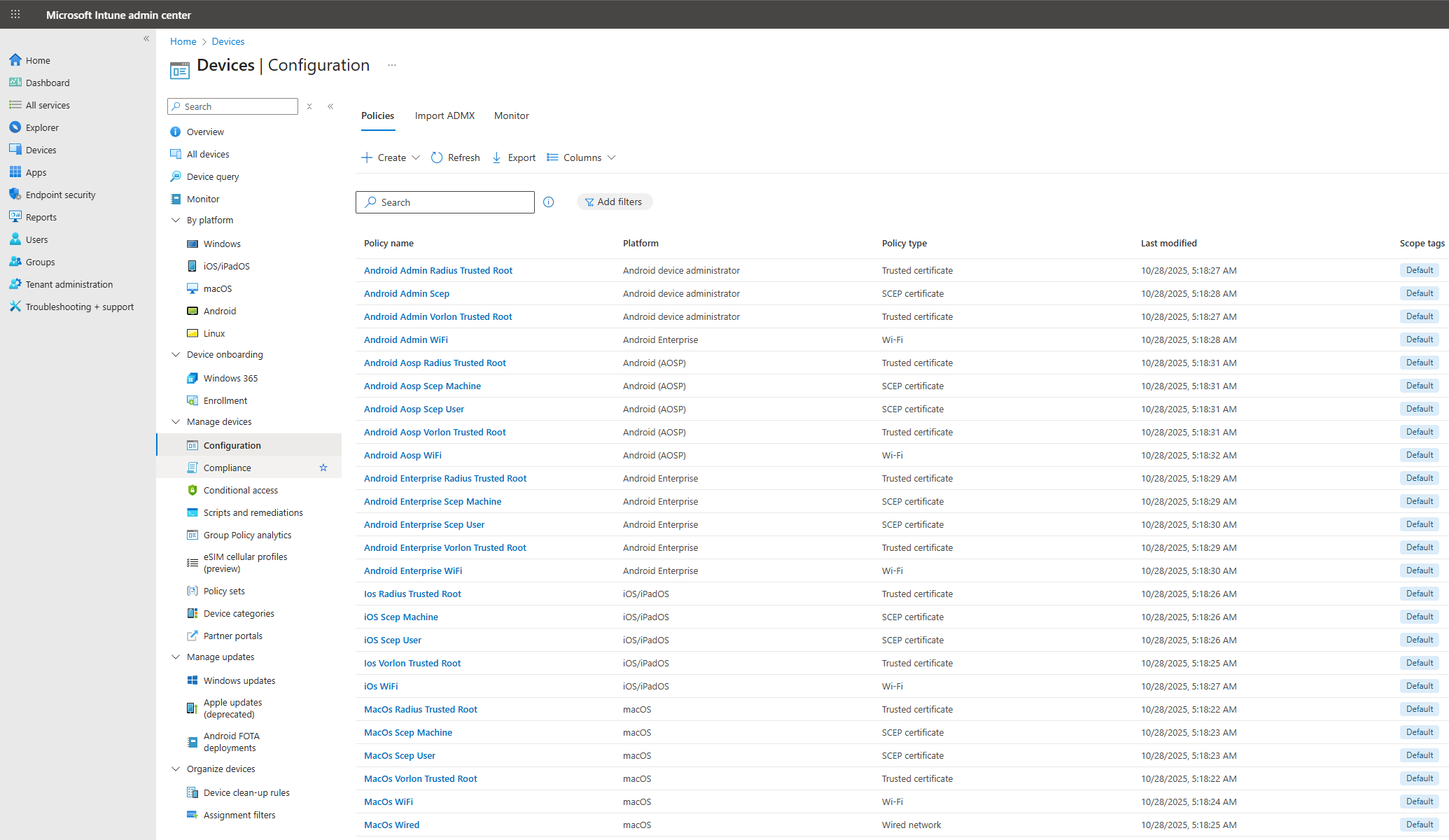 Important: The Intune configuration API provided by Microsoft is still in Beta stage, and so you still need to perform some manual steps after automatically creating policies. See the next section on information how to perform these steps.