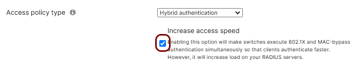 2. Find the Access policy type section with Hybrid authentication selected, and activate the Increase access speed checkbox.