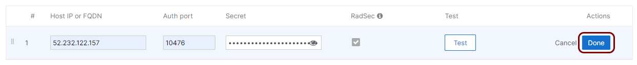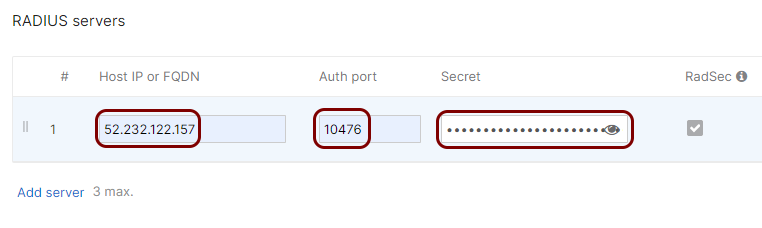 Cloud RADIUS server configuration (for one or two servers, depending on your configuration).