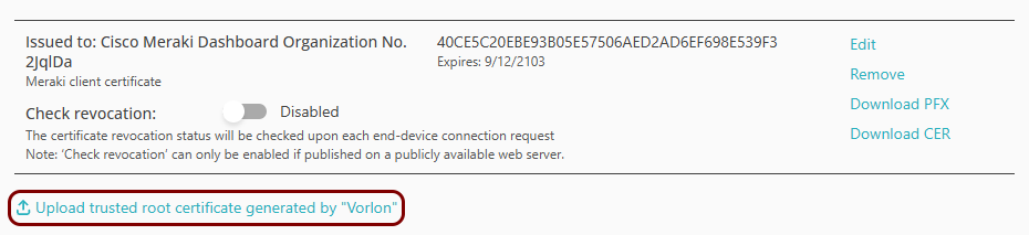 Download the client certificate from Meraki and upload it to Portnox Cloud: