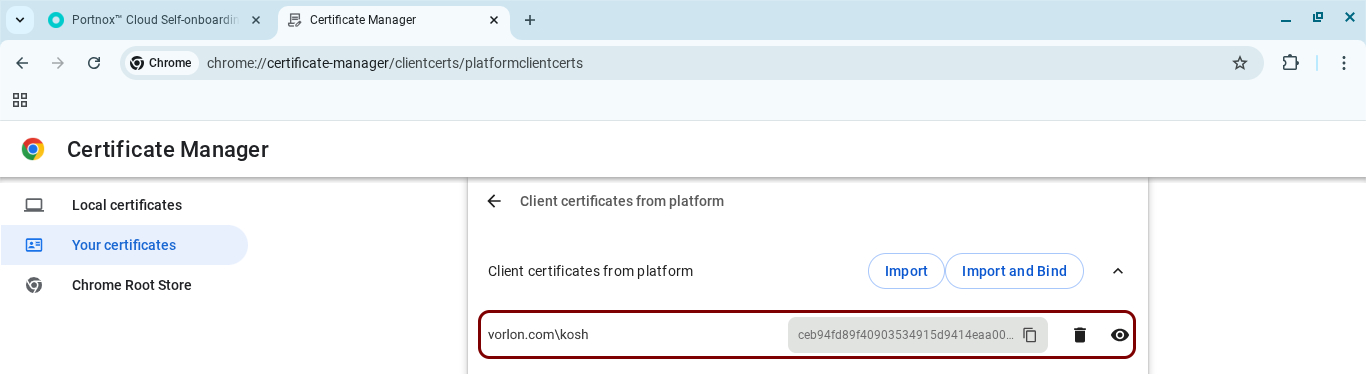 In this section, you will learn how to get the certificate issued by Portnox Cloud for your ChromeOS device and how to import it into Chrome.